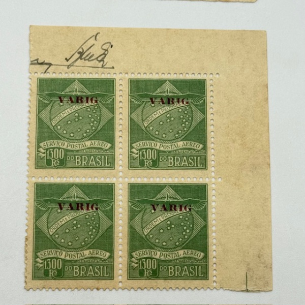• Selos Variguinho. Canto de folha, quadra mint assinada. Valor de catálogo 2500 unidades filatélicas. Luxo