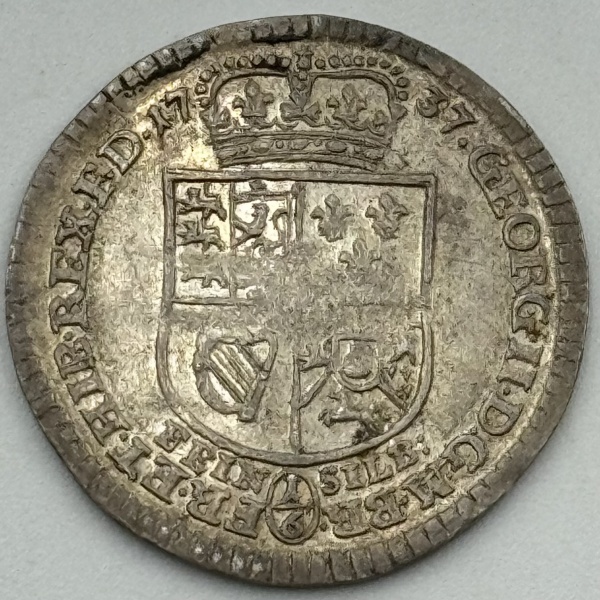 • Moeda Alemanha Braunschweig-Luneburg. 6 mariengroschen, 1737. Rev: escudo. Prata - SOB/FC