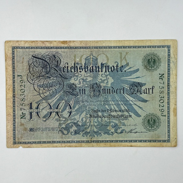 • Cédula Alemanha, 100 mark. Número de série e selo verde. Pick 34 - MBC