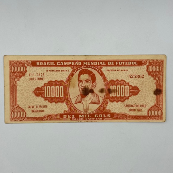 • Cédula. Escassa cédula Copa do Mundo 1962. Garrincha. Brasil Campeão - MBC