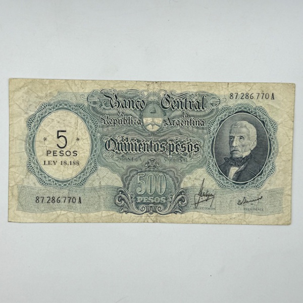 • Cédula Argentina, 5 pesos ou 500 pesos 1969/71 - SOB