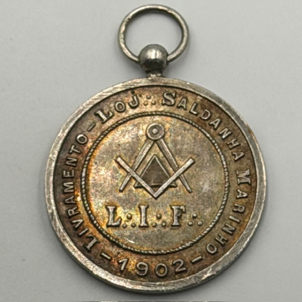 • Maçonaria. Medalha Saldanha Marinho de prata. Ano 1902. Grande oriente do Rio Grande do Sul. Livramento. 9.64 g