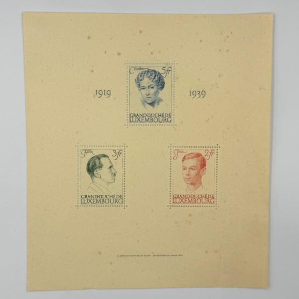 • Luxemburgo. Yv bloco n° 3, 1939. 2° coluna com goma. 70 euros