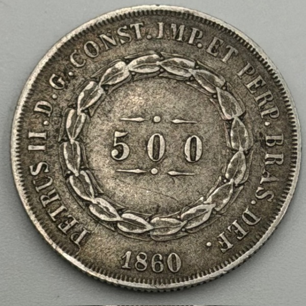 • Moeda 500 réis, 1860. Valor em metal dia 25/01/2026 102,60 reais