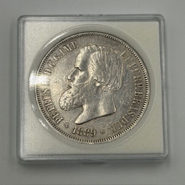 • Moeda 2000 réis, 1889. Valor em prata hoje 29/01/26 410,78