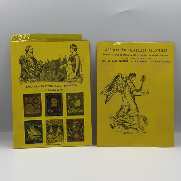 • `S pecimen` 2 folhinhas filatélicas. Exposição com motivos religiosos 24/03/1958 e exposição filatélica luso brasileira 1957