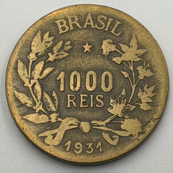 • Moeda 1000 réis, 1931. Escassa. Abundancia, fortuna - MBC