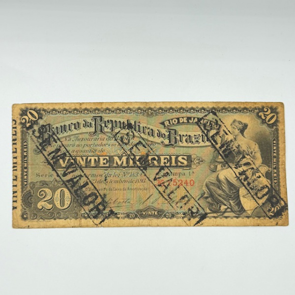 • Cédula 20.000 Réis. C.Amato B297 MBC/S (com carimbo sem valor). 2° periodo emissor 1889-1896 - MBC/S