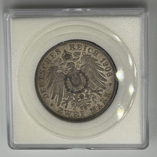 • Moeda Alemanha Império Prussia. Cidade de Hamburgo. 2 marcos, 1906J. Brilho original. Prata 900, 11.11 g - FC