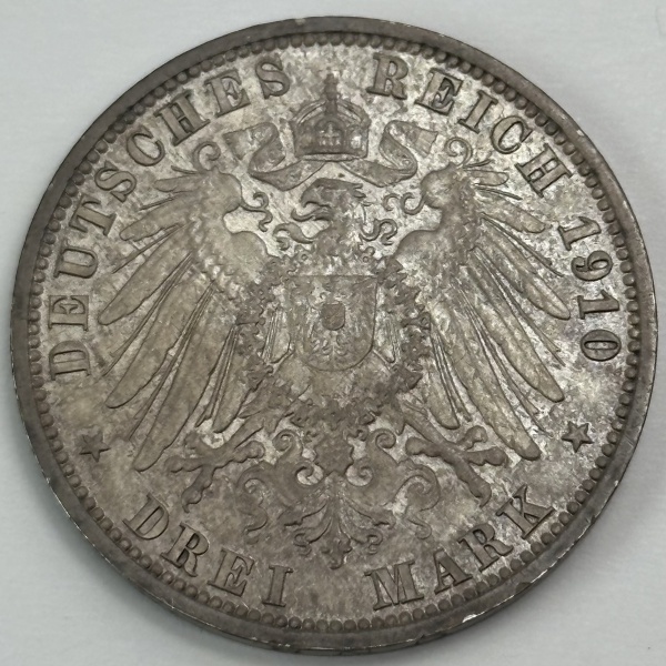 • Moeda Alemanha Saxe-Weimar eisenach 3 marcos 1910 flor de cunho prata 900 peso 16.67g FC