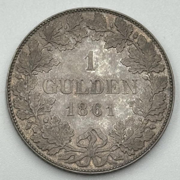 • Moeda Alemanha Frankfurt 1 gulden 1861 prata 900 peso 10,51g FC