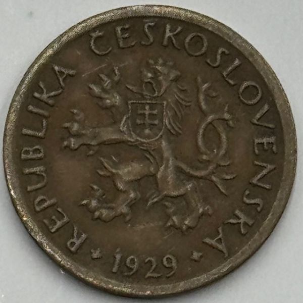 • Moeda Tschechoslovakia República, 10 heller, 1929. Ponte em Praga, Rev: Esc:de-leão. Latão, 1.96 g, KM 3. Escassa - S