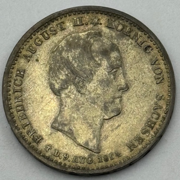 • Moeda Alemanha Sachsen 1/6 Thaler, 1854. Friedrich-Augusto II. +D.9 - Augusto 1854. Prata 0521, 5.34 g - FC