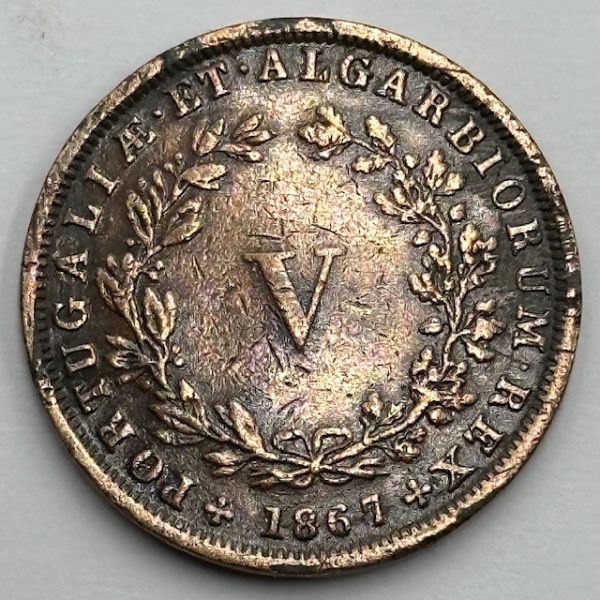 • Moeda Portugal Reino V reis 1867 D.Luiz IA 1861-1889 soberba