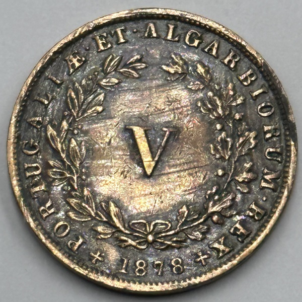 • Moeda Portugal Reino V reis 1878 D.Luiz I 1861-1889 soberba