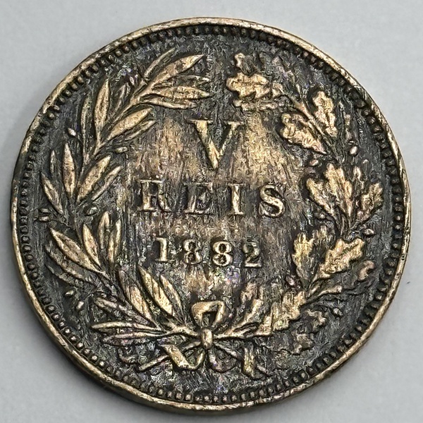 • Moeda Portugal reino V reis 1882 D.Luiz I 1861-1889 soberba