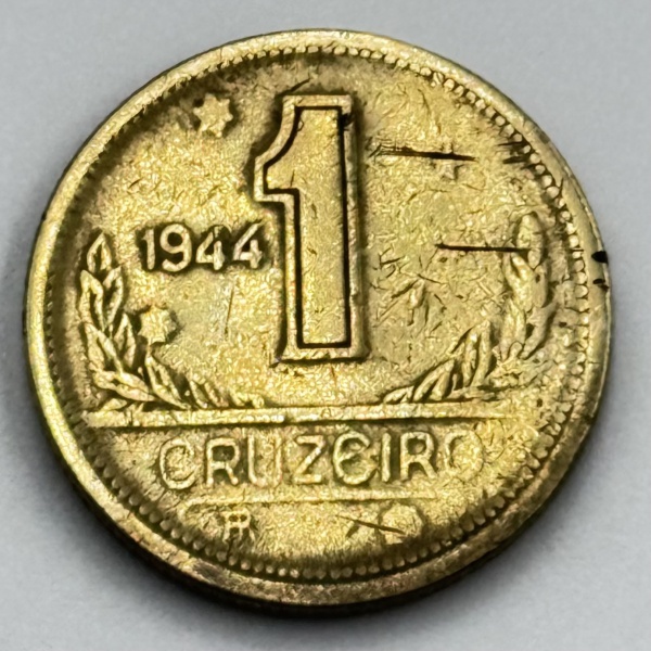 • Moeda 1 cruzeiro, 1944. Sem sigla - MBC