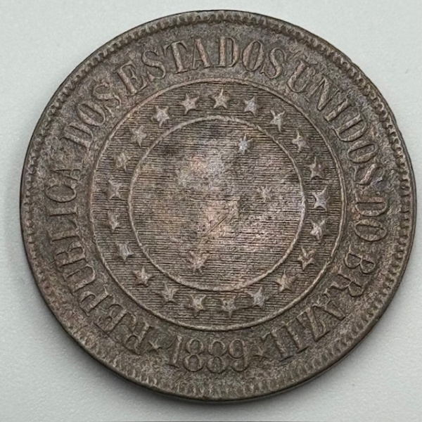 • Moeda 40 Réis República, 1889. Bronze - BC/MBC