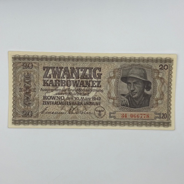 • Cédula Ukrania. Ocupação alemã na 2 guerra mundial. Com suástica. Flor de estampa marcada no catálogo World Coins. 100 dólares. Oferta!! - FE